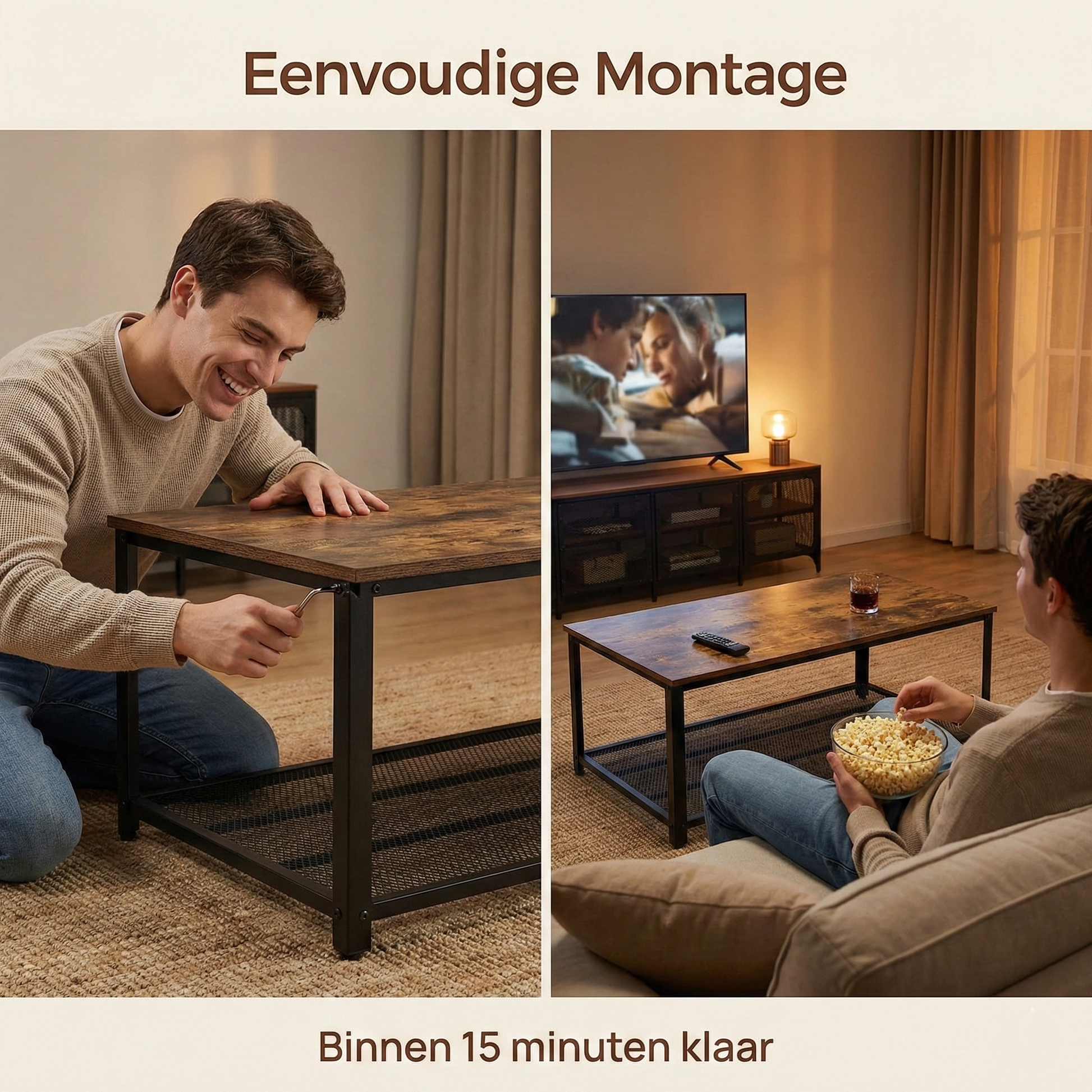 ✅ Slimme Opbergruimte: Rondslingerende tijdschriften, afstandsbedieningen of boeken zijn verleden tijd. Het metalen gaasrooster onderin biedt volop ruimte om je woonkamer netjes en georganiseerd te houden.