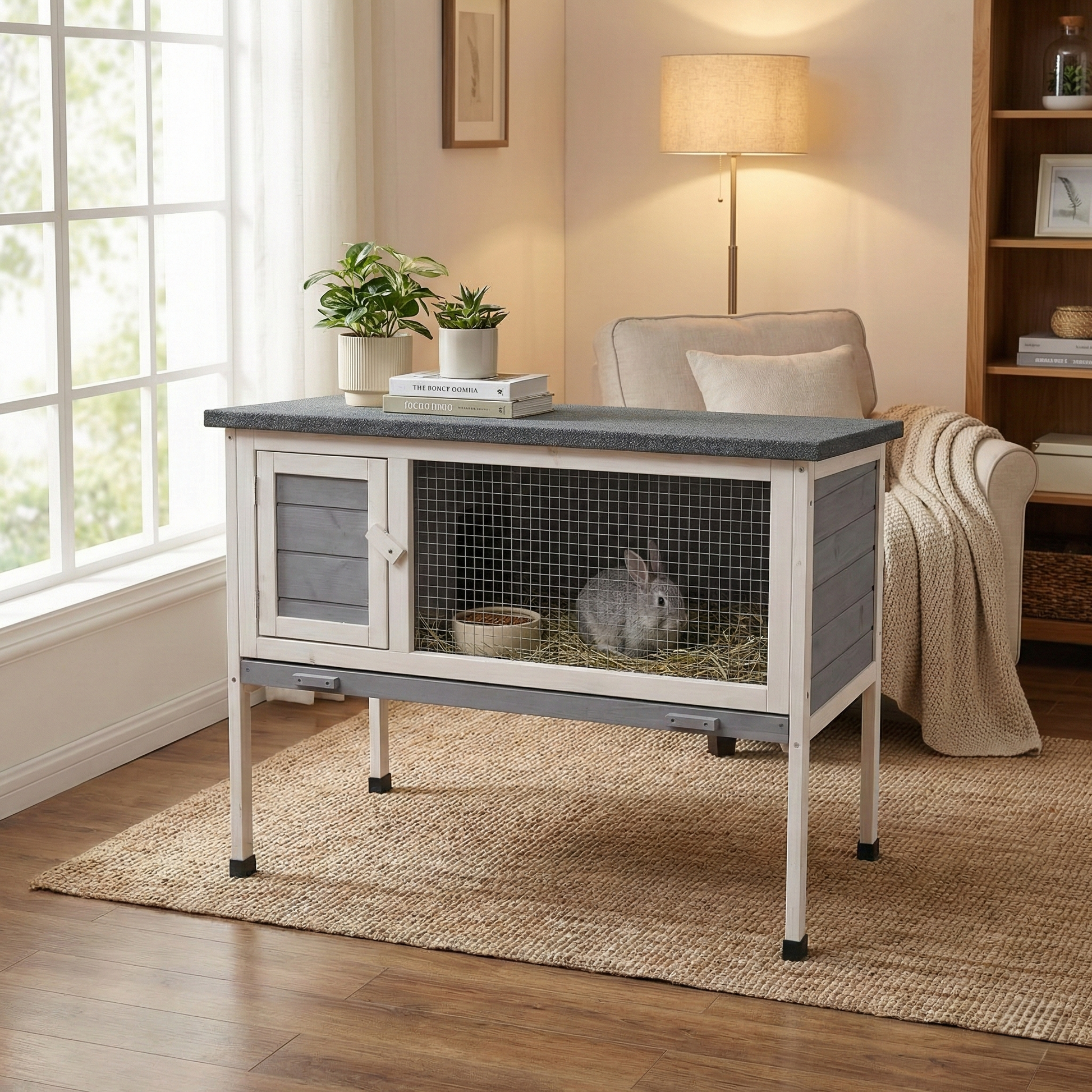 Het IvoQ Konijnenhok biedt een veilige en praktische plek voor je konijn, met een ontwerp dat past in zowel binnen- als buitenruimtes.