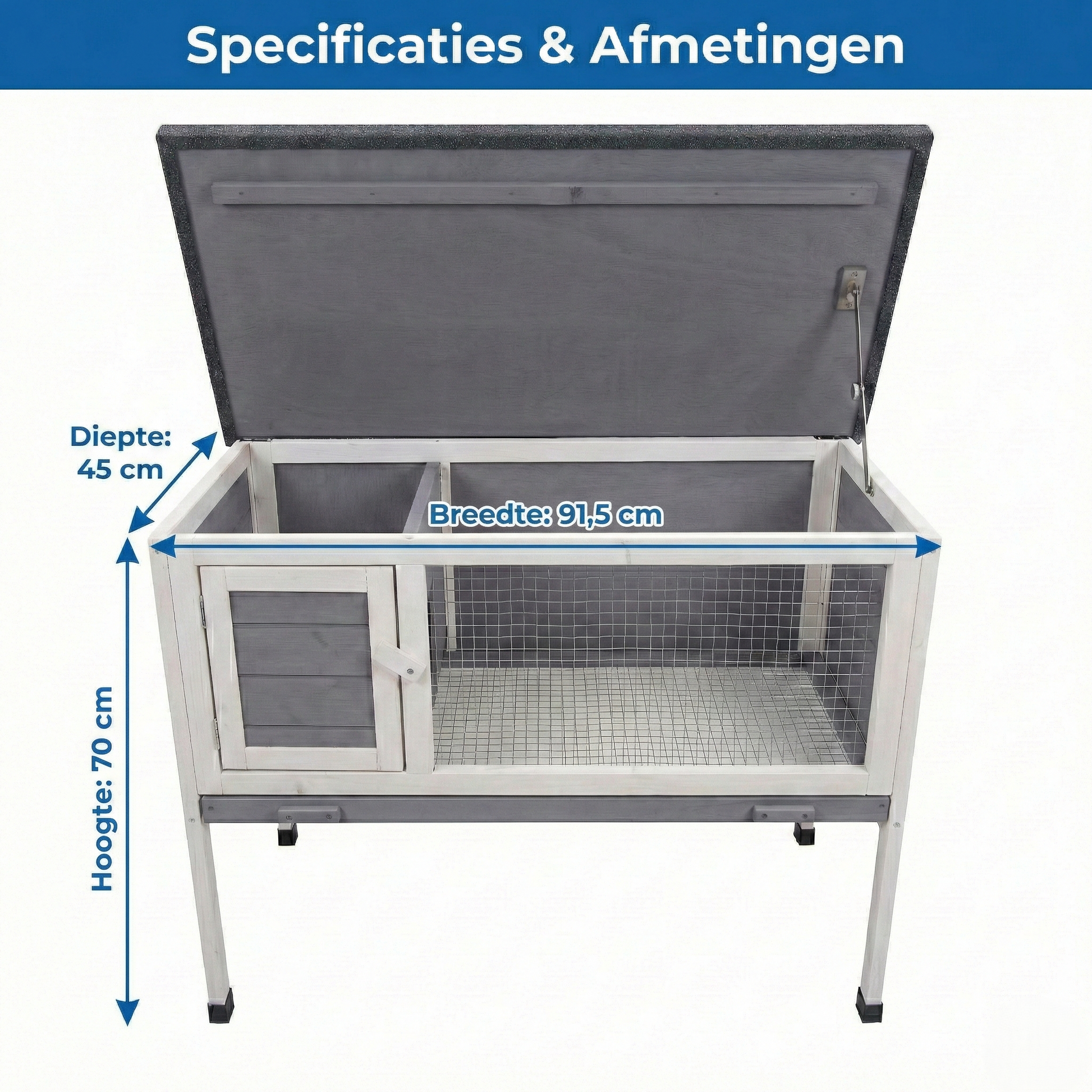 • Afmetingen: 91,5 cm (L) x 45 cm (B) x 70 cm (H)